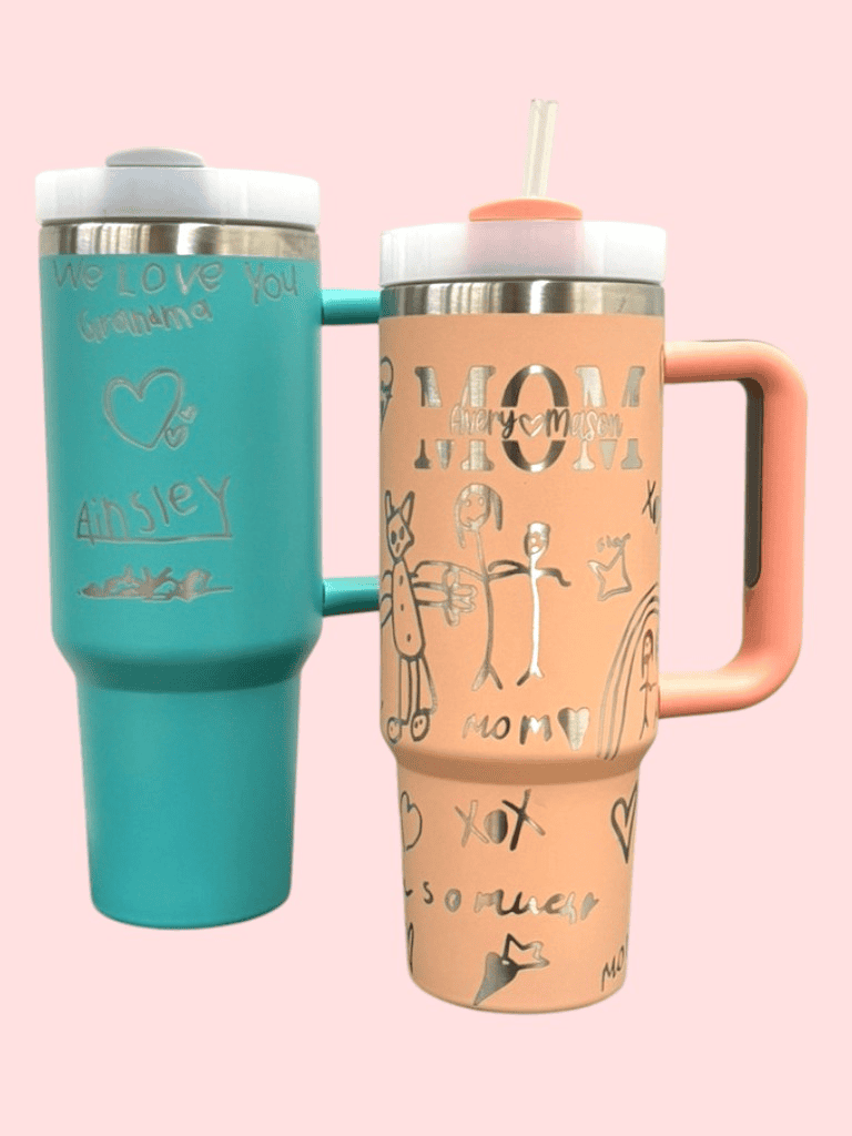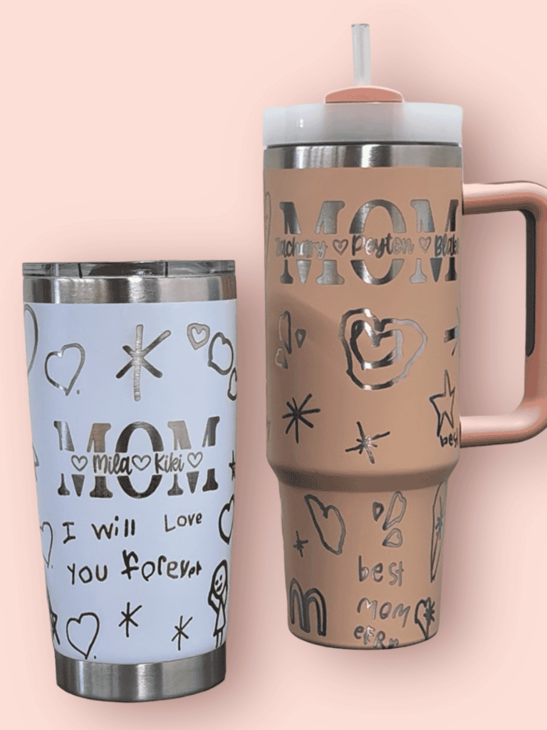 Upload a drawing, handwriting sample, or special message and I’ll laser it onto a custom cup — a meaningful gift for moms, dads, and grandparents who are impossible to shop for.